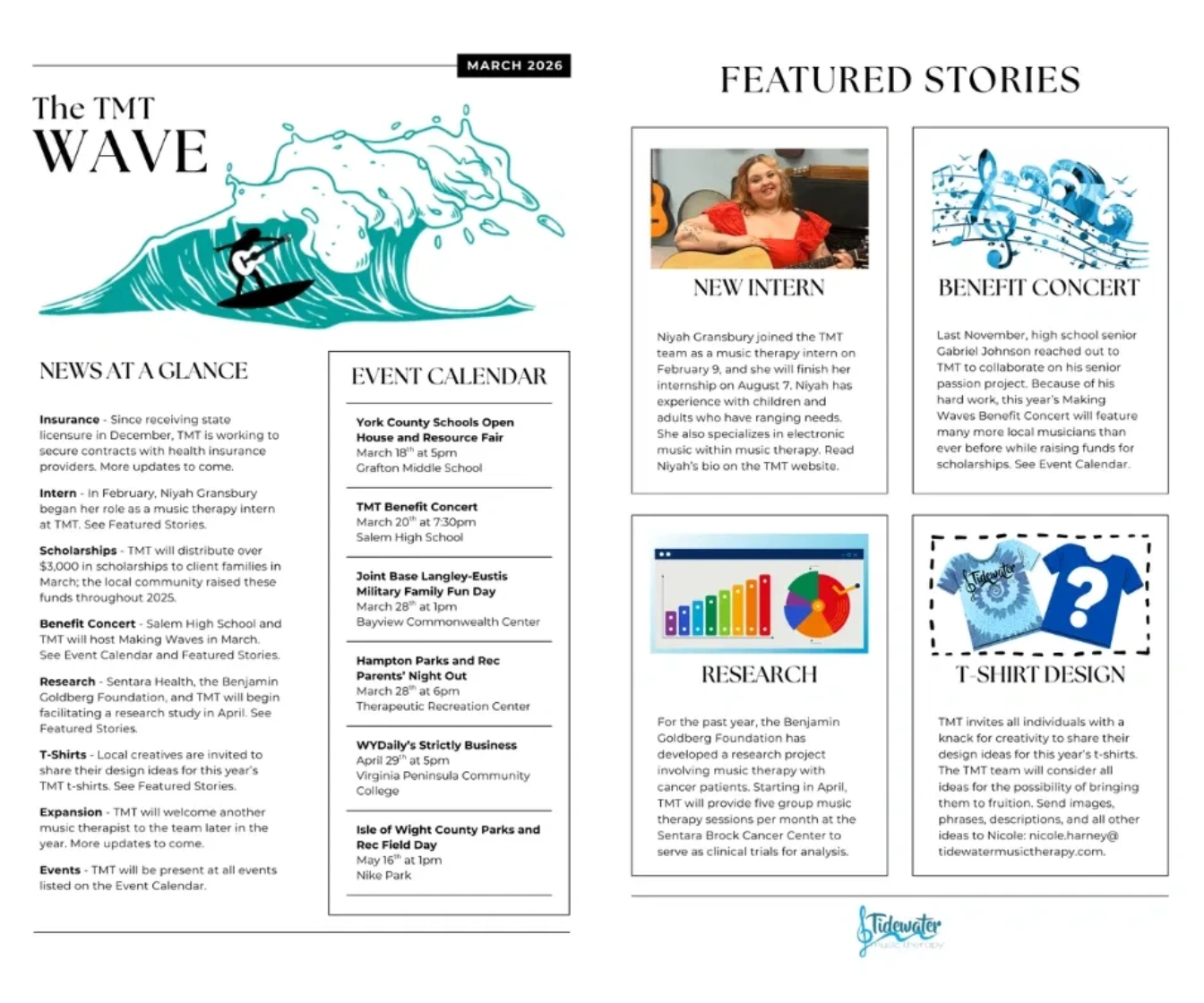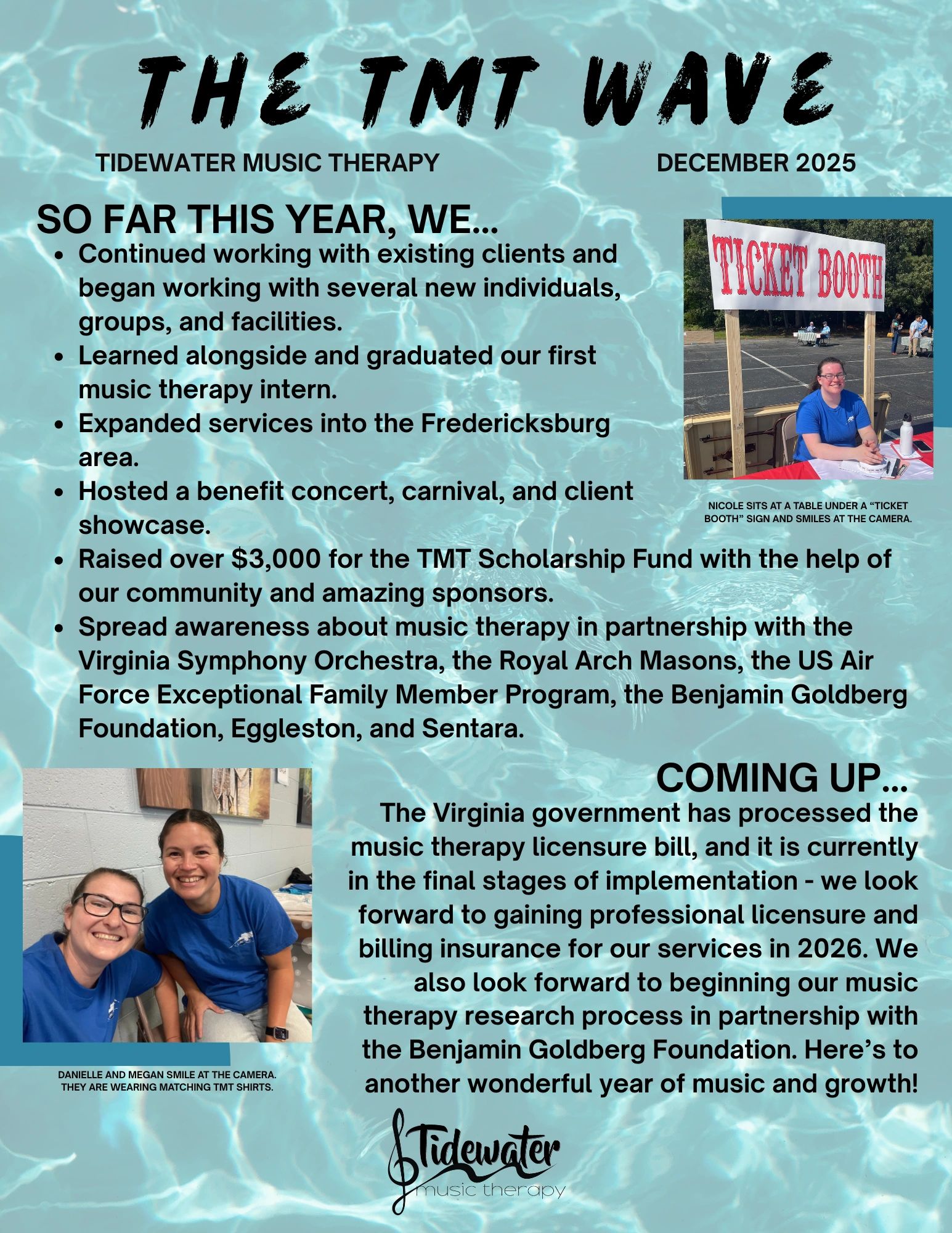 We have been providing music therapy services to the Hampton Roads Community since 2019. We hope to continue spreading the word across the Tidewater Region of how music therapy can improve the lives of many!